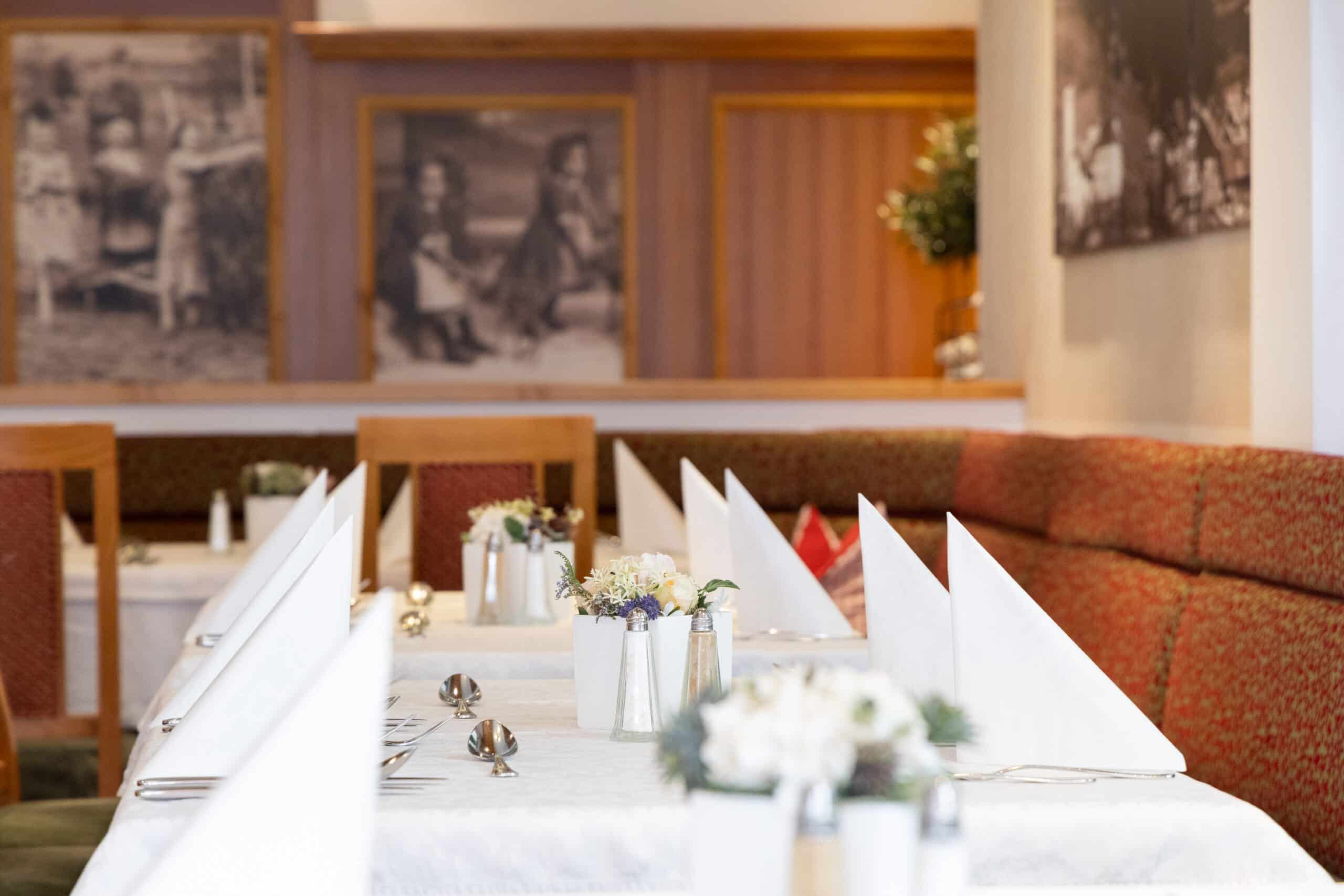 Genießen Sie unsere Halbpension in gemütlicher Atmosphäre – im Speisesaal und in unseren liebevoll eingerichteten Stuben.